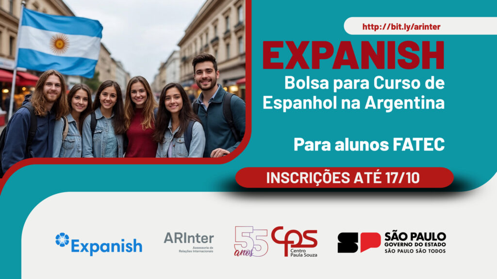 A Assessoria de Relações Internacionais do Centro Paula Souza (ARInter) divulga a abertura do Edital ARI nº 069/2025, que oferece bolsa de estudos para estudantes das Fatecs presenciais participarem do Programa Expanish – um curso intensivo de língua espanhola em Buenos Aires, Argentina. Trata-se de uma oportunidade única de imersão cultural e acadêmica, que combina aulas de espanhol em uma instituição de referência com vivência internacional em uma das capitais mais marcantes da América Latina. O que é o Programa Expanish? O Expanish é um programa internacional que promove: Curso intensivo de espanhol com 20 horas semanais, durante 2 semanas, na escola Expanish, em Buenos Aires. Certificação internacional ao final do curso. Acomodação inclusa em apartamento compartilhado, em quarto individual, com banheiro compartilhado. O programa poderá ser realizado com base no calendário da instituição parceira. ⚠️ As bolsas não cobrem passagens aéreas, seguro-viagem, alimentação, documentação (como visto) e demais despesas pessoais. Objetivos do programa: ✔️ Aprimorar a formação dos estudantes das Fatecs, ampliando suas habilidades em língua espanhola. ✔️ Promover experiência de imersão cultural, desenvolvendo competências interculturais e socioemocionais. ✔️ Contribuir para uma formação mais completa, favorecendo a inserção dos alunos no mercado de trabalho globalizado Quem pode se inscrever? Podem participar estudantes de Fatec presencial que atendam aos seguintes requisitos principais: Estar regularmente matriculado em curso da Fatec, com Percentual de Progressão de Intercâmbio (PPI) entre 15% e 50%. Ter concluído pelo menos o primeiro semestre. Ter o componente curricular de espanhol como língua estrangeira no curso. Possuir nível mínimo A2 de proficiência em espanhol (QCER), comprovado por declaração do professor responsável. Ter 18 anos ou mais e ser residente no Brasil. Não ter participado anteriormente de outro programa de intercâmbio presencial do Centro Paula Souza. Cronograma: Início das inscrições: 16 de setembro de 2025 Encerramento das inscrições: 17 de outubro de 2025, às 23h59 Divulgação da lista preliminar: a partir de 24 de outubro de 2025 Como se inscrever: As inscrições devem ser feitas exclusivamente pela página de Editais Abertos da ARInter, no link abaixo: 👉 Clique aqui para se inscrever O procedimento de inscrição inclui login com CPF e seleção da unidade, curso e do edital nº 069/2025. Após a confirmação, o candidato receberá um e-mail institucional validando sua participação. Responsabilidades do bolsista Os estudantes contemplados deverão: Apresentar Carta de Motivação e Declaração de Proficiência em Espanhol (nível A2 ou superior). Participar das reuniões e atividades de orientação pré-embarque organizadas pela ARInter. Providenciar passagens, seguro-viagem, documentação e demais despesas pessoais. Cumprir integralmente as normas do programa, da Fatec e da escola parceira Expanish Por que participar? 🌎 Experiência internacional que valoriza seu currículo. 📚 Aprendizado intensivo de espanhol com certificado reconhecido. 🤝 Intercâmbio cultural que amplia horizontes pessoais e acadêmicos. 🚀 Diferencial competitivo para sua futura carreira. Mais informações: Confira o edital completo com todos os detalhes: 📄 Edital ARI nº 069/2025 – Expanish Em caso de dúvidas, entre em contato com a ARInter pelo e-mail: 📧 mobilidade.arinter@cps.sp.gov.br 📢 Não perca essa chance! Buenos Aires espera por você em 2026.